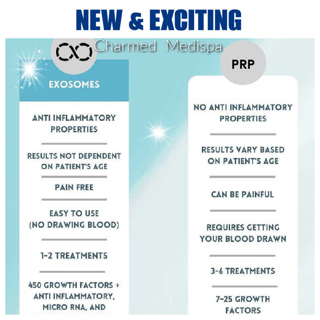 - Exosomes are considered 100x more powerful than PRP and our patients love that young growth factors are being used (not their own older growth factors).