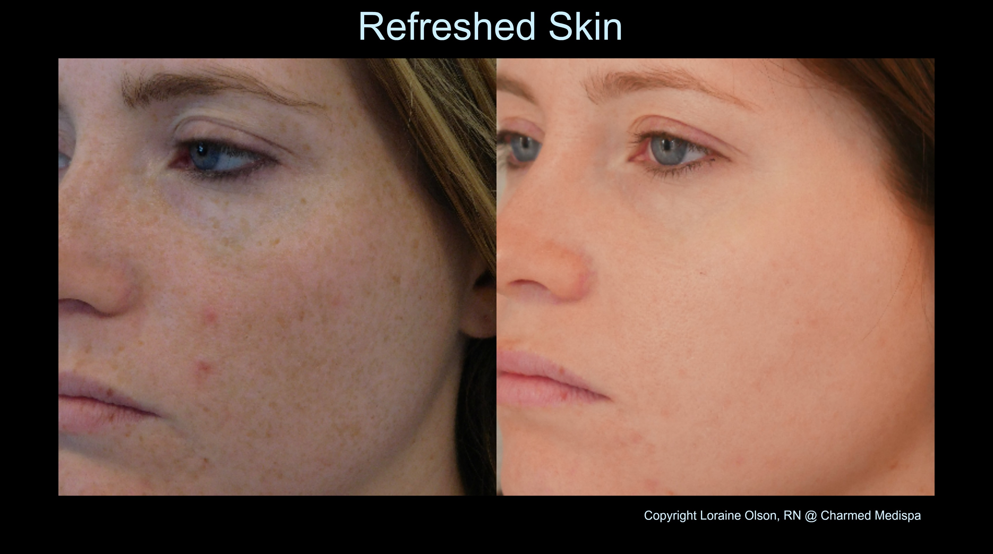 How cute some people think when they see freckles on a child? Some adults even like their freckles because they believe it makes them look younger. But here’s the truth. The sad truth. Freckles are being made to protect the skin from UV radiation from the sun. This radiation causes aging, wrinkles and skin cancer. Think of the freckle as an umbrella. Therefore, a freckle merely is a sign that you are getting excessive UV radiation and sun damage. Sun damage doesn’t sound cute anymore, does it? Here is an excellent example of a young person with excessive freckles (which later in life we call “liver spots”). Her body is making loads of umbrellas to protect the DNA of her skin cells beneath it. You are not born with freckles. You will not get a freckle in an area of the body that is not exposed to the sun. Turn your arm over. Do you have a lot less pigmentation there? Exactly! Do you have a lot less sun damage under your chin? Exactly! Charmed Medispa guided this lovely lady on the right products to use to gain cellular health in her skin as well as to protect her skin appropriately from sun damage. The results of Charmed Medispa’s skin care is exceptional as you can see. Wow results! Mostly importantly, she will significantly decrease her risk for skin cancer and she will enjoy the benefits of radiant and clear skin that also has less acne and oil production. We are very happy she started at a young age! Statistically, she could have been on the road to potential skin cancers! So when you see your daughter, son, husband or yourself with freckles, hopefully, now you understand that they are signs. Signs of destruction and damage. Warning signs. Charmed Medispa offers comprehensive free consults to evaluate our specific skin and to coach you on the proper products that are results and health oriented. In addition, we offer laser services, microdermabrasions, facials, microneedling, Botox, dermal fillers, acne and rosecea control and much more. Our strategy is to listen, educate and then treat. Loraine Olson, RN, and Shae Ryan, licensed Aesthetician, are full disclosure providers! As you can see, from our portfolio of results, we are driven by your satisfaction. Who else is showing you their work day after day? Exactly!