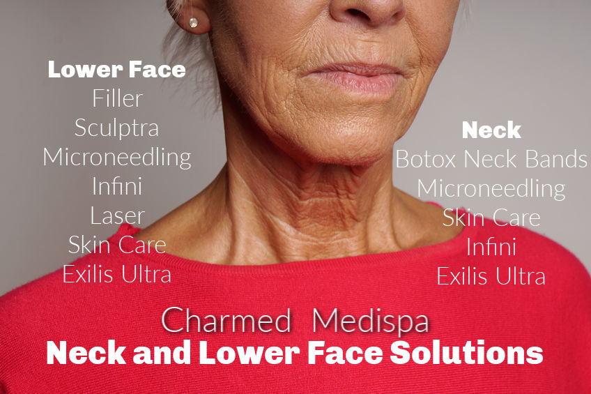 Are you concerned about your lower face and neck area? Do you feel like you have aged recently with all this 2020 stress? There are solutions to rejuvenate and revive your lower face and neck. Charmed Medispa has many of those solutions and if we don’t have what you need or want, we are happy to refer you to the proper providers.