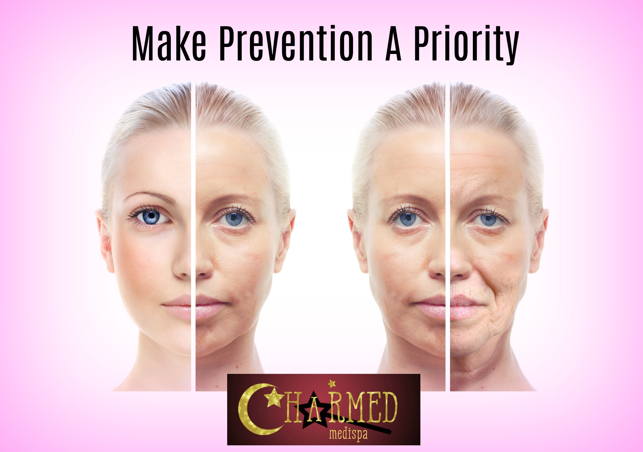 Prevention starts at home. You have to make choices like avoiding tanning and being diligent with skin care. You will win big at home. Did you know that 90% of the skin aging process comes from exposure to ultraviolet radiation and pollutants? At Charmed Medispa, we remind you that “radiation” is not a good thing. Makes sense when you just say that word by itself.