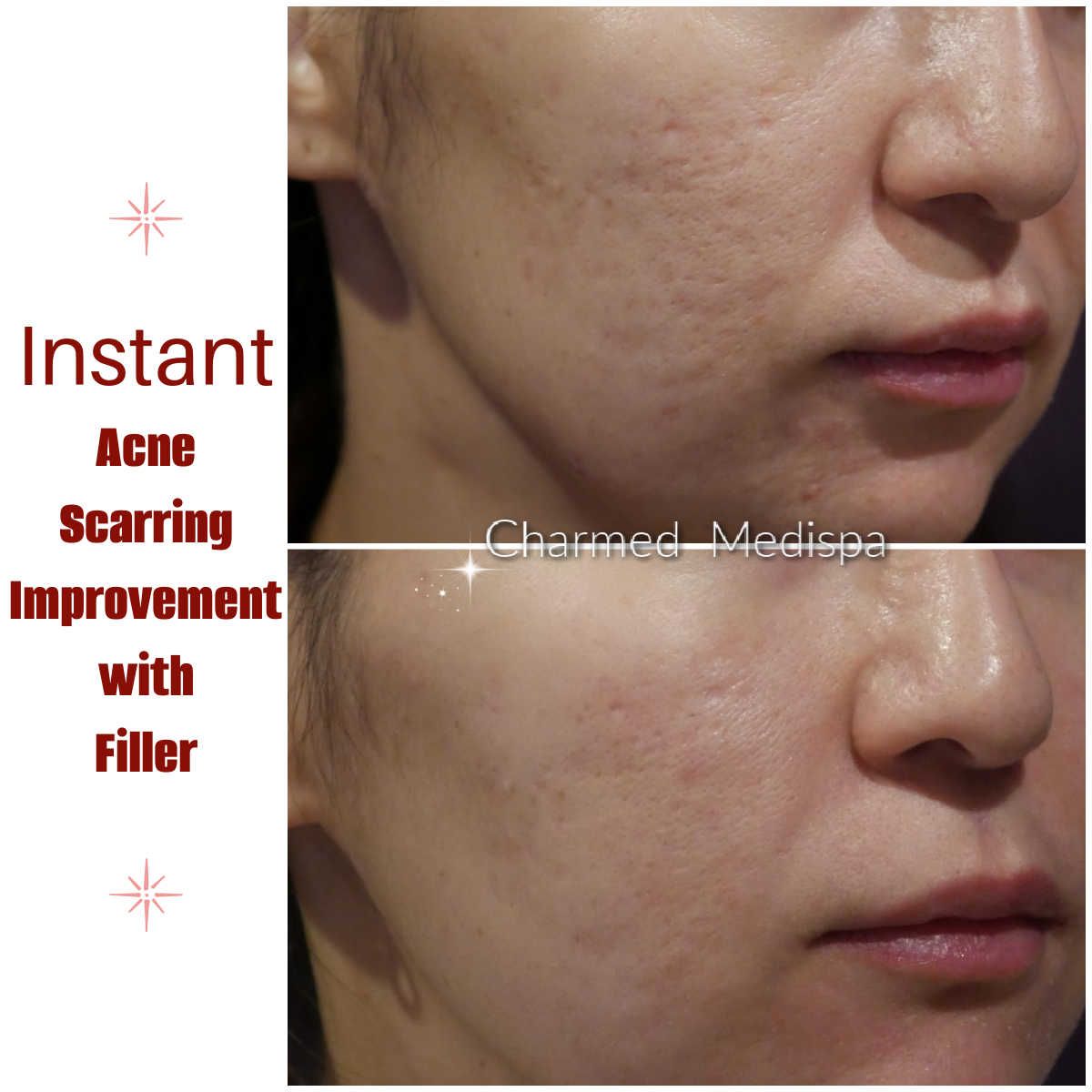 - Depressed scarring like acne scarring can be dramatically improved with fillers without downtime.