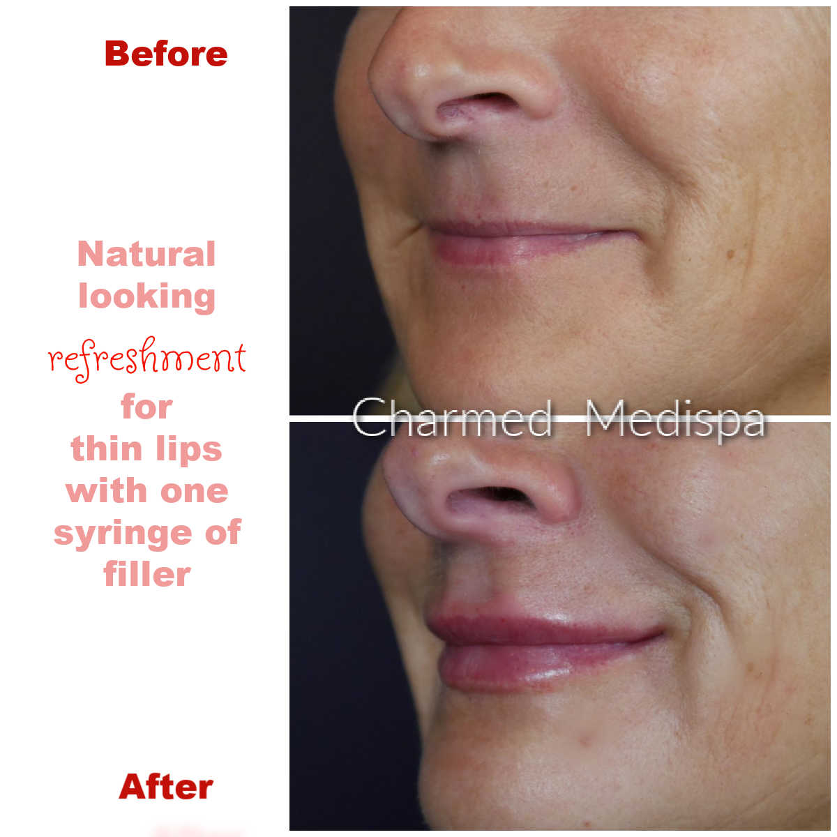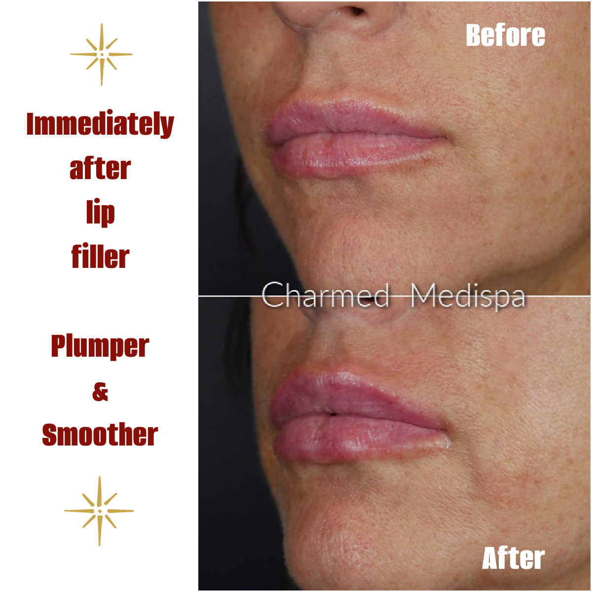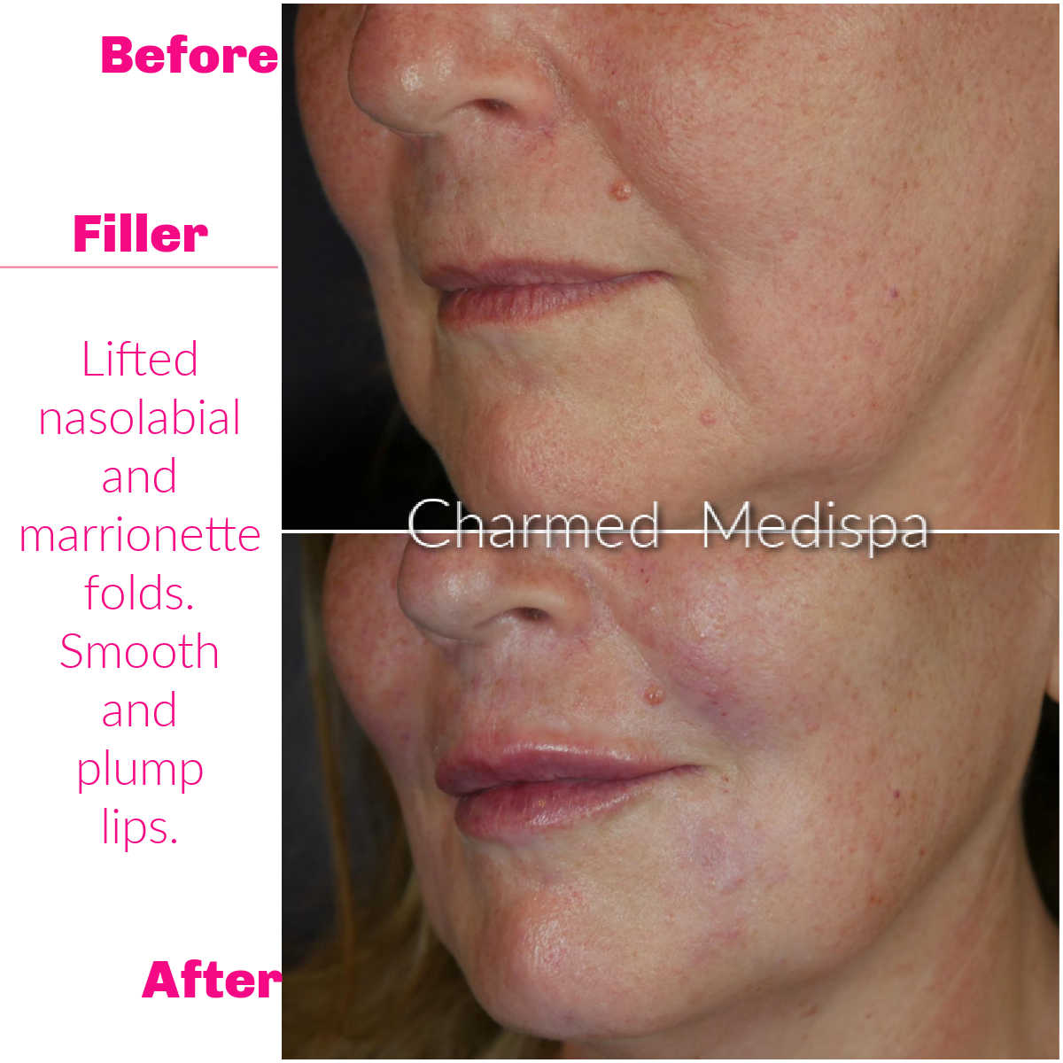 Our experienced provider, Loraine Savarese, RN, at Charmed Medispa will guide you on how to minimize the risks of bruising and swelling so that your treatment is the best experience possible. The biggest risk that you have with fillers are that you might want more. Once you have fillers, you will understand how compelling the results can be.