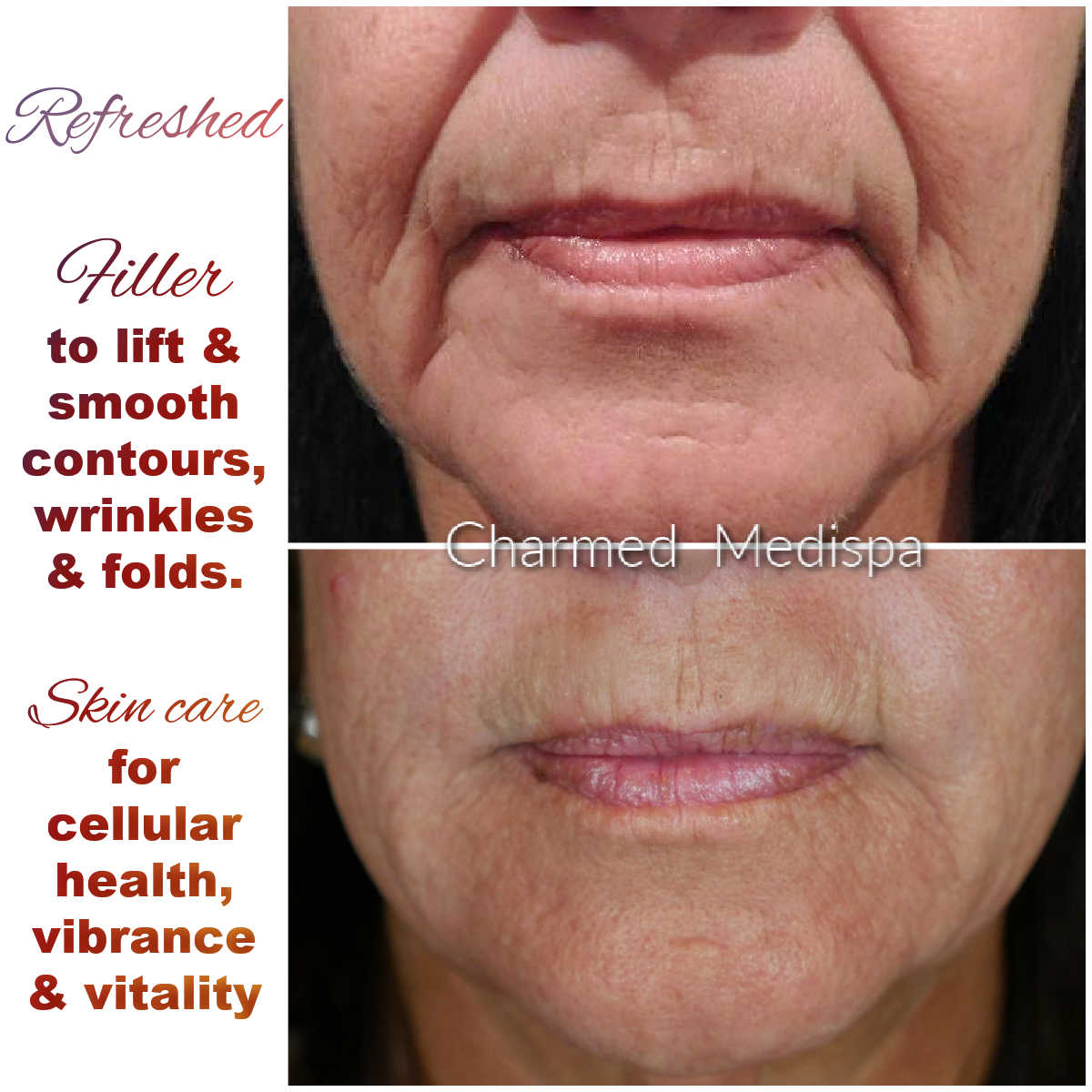 - Desired Results: Each patient has unique aesthetic goals. Whether it’s enhancing lips, smoothing wrinkles, or restoring volume to the cheeks, communicating your desired results to the provider will help guide the selection process. Charmed Medispa’s team will work closely with you to ensure your expectations are understood and achievable with the chosen dermal filler.