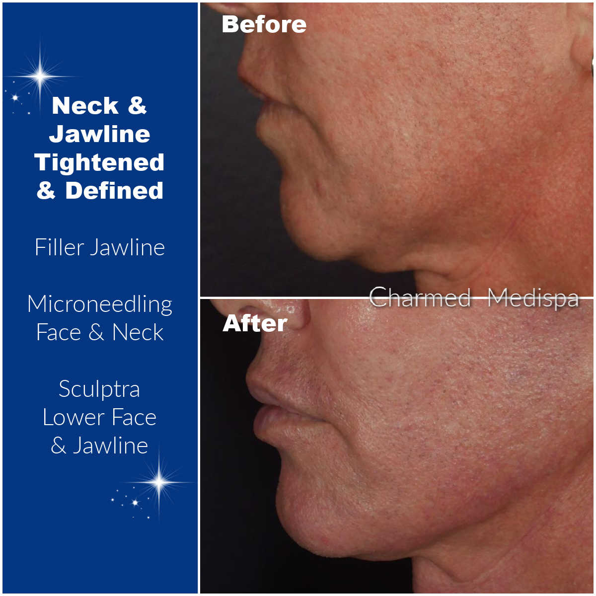 - The jaw line can be defined as well and fillers are a great choice for recessed chins. The jowls improve dramatically with fillers and smooths and defines the jaw line.