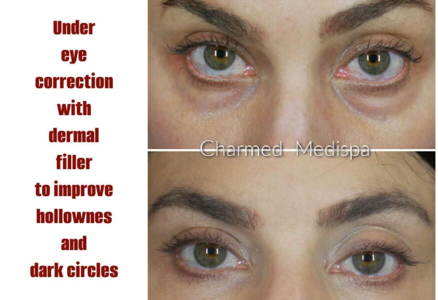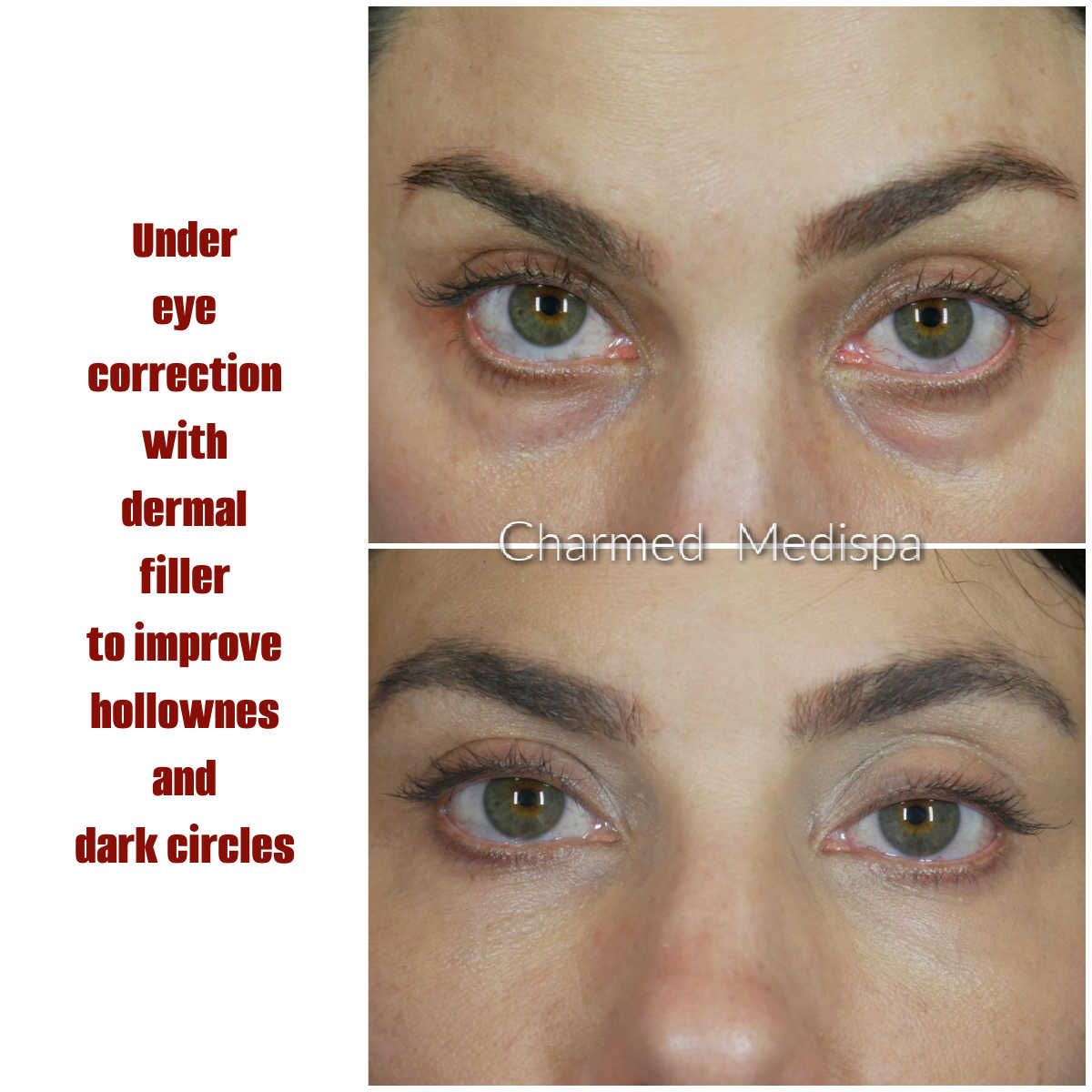 - Filler can be used under the eye to improve the hollowness, darkness and tired appearance. This treatment with filler is called a tear trough injection.